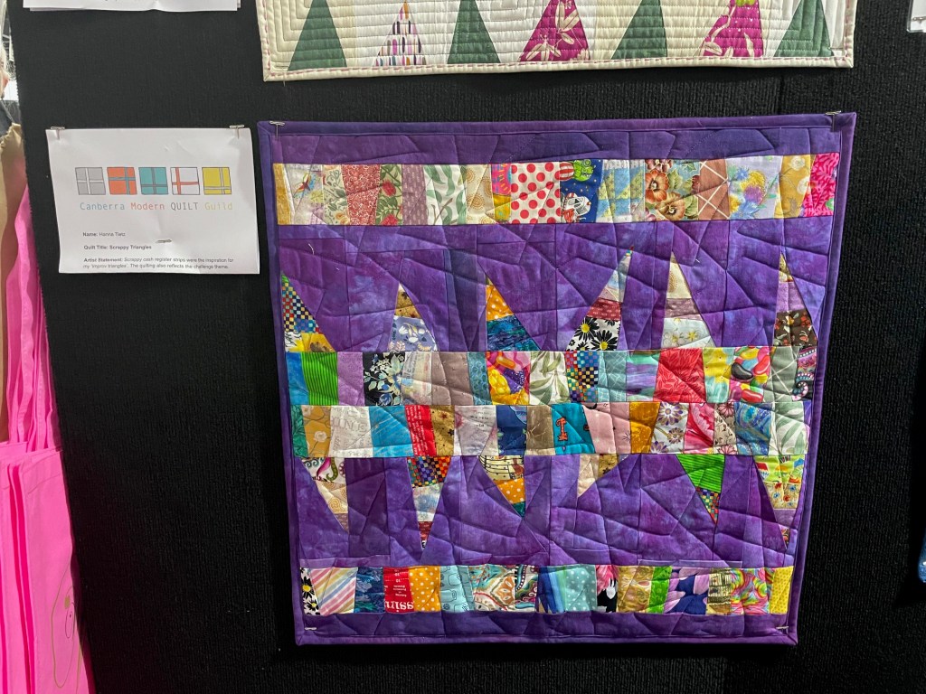 Canberra Modern Quilt Guild members were challenged to use this technique, or any other improvisational triangle technique, to create their challenge piece.