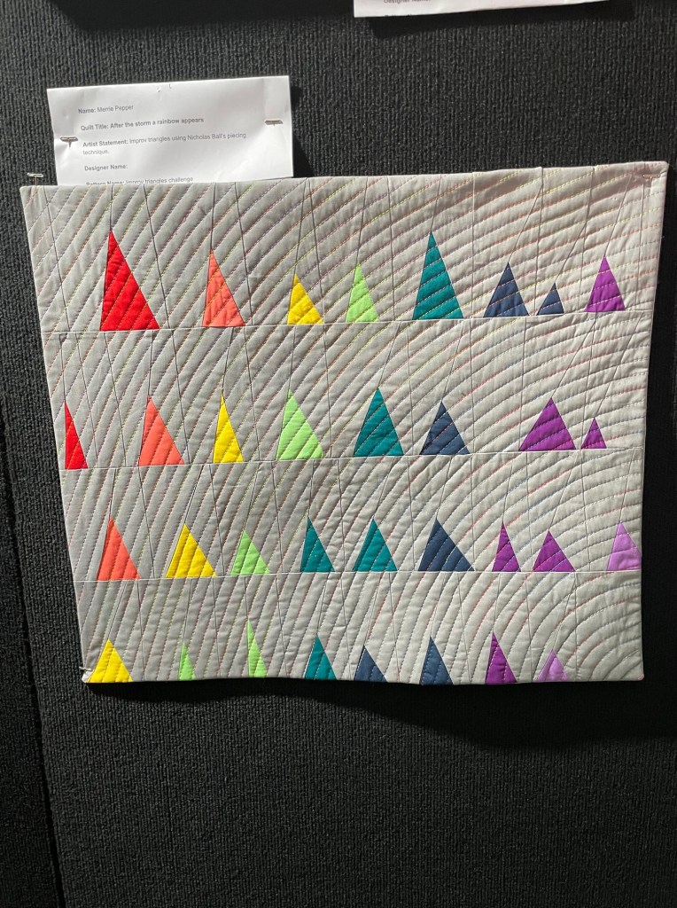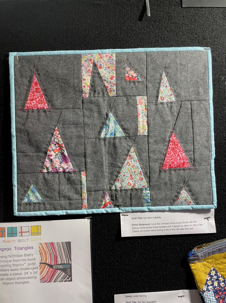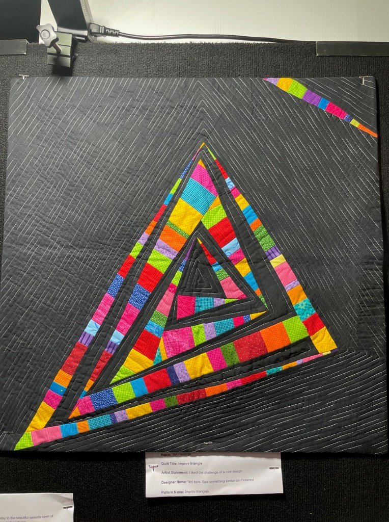 The Canberra Modern Quilt Guild’s 2025 challenge theme for members is ‘Improv Triangles’. The theme was inspired by Nicholas Ball’s (@QuiltsFromTheAttic) design in his 2019 book Inspiring Improv: Explore Creative Piecing with Curves, Strips, Slabs and More.