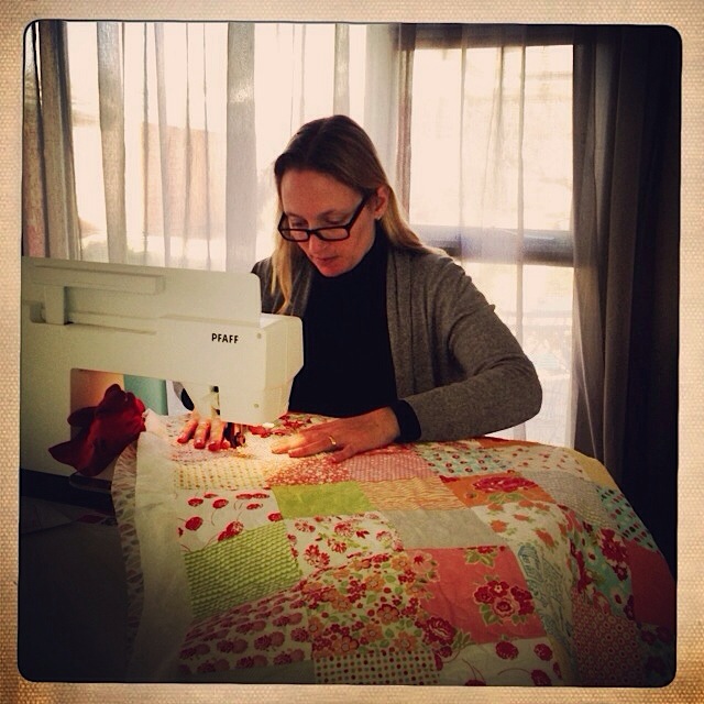 It’s a little hard to say how long I’ve been quilting, it’s been something that has evolved over quite a few years. I grew up surrounded by craft, my Mum was a dressmaker and made all my sister’s and my clothes when we were little. She did a course at TAFE and was even proficient at making bras and undies although I don’t think she particularly enjoyed that part of the course and nobody in the family ever benefited from that. We did, however, have a wardrobe of beautiful dresses and other pretty things. My Nana (Mum’s mum) was also a prolific sewist, as well as a knitter, spinner and weaver. She taught me to knit when I was about seven, but before (and after) that I remember trying my hand at the spinning wheel, and my grandfather made me a mini version of her loom. Family holidays at their home in Cooma were very crafty, and it was there I learnt to appreciate the cosiness of sitting by the fire with a cuppa and my knitting. I’ve always been a Nana!! I knitted and cross-stitched my way through uni but it wasn’t until I had a proper job that I took a real interest in quilting (my Mum – and Nana – had by that stage made a definite shift from dressmaking to quilting) – I must have known that some income would be required to support this hobby! I started hand-piecing blocks (they were never sewn into a quilt), and made a couple of quilts for friends’ babies, always with help from Mum. It wasn’t until the first wave of more modern fabrics arrived (around 2009) that I became really swept away (this was around the time i discovered quilting blogs too!) and the sewing (and fabric collecting) frenzy began. I spent a lot of time lurking on modern quilting groups on Flickr, and participated in quite a few swaps and bees.