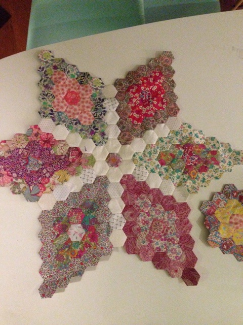 Danielle’s current hexy project – 7/8″ Liberty hexies